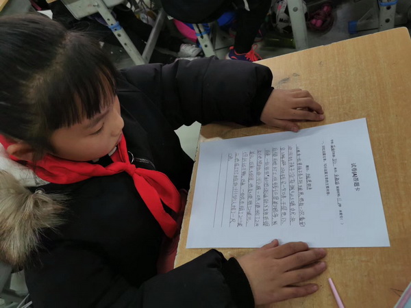 本次“速读”测试卷,选用一篇861字的文章,请孩子们快速阅读,并认真作答,由评委教师负责计时。一分钟的时间内,学生将试卷反扣在桌子上,开始快速做题,当老师一声令下,学生们目不转睛的盯着试卷,他们在争分夺秒的阅读,孩子看的多认真!