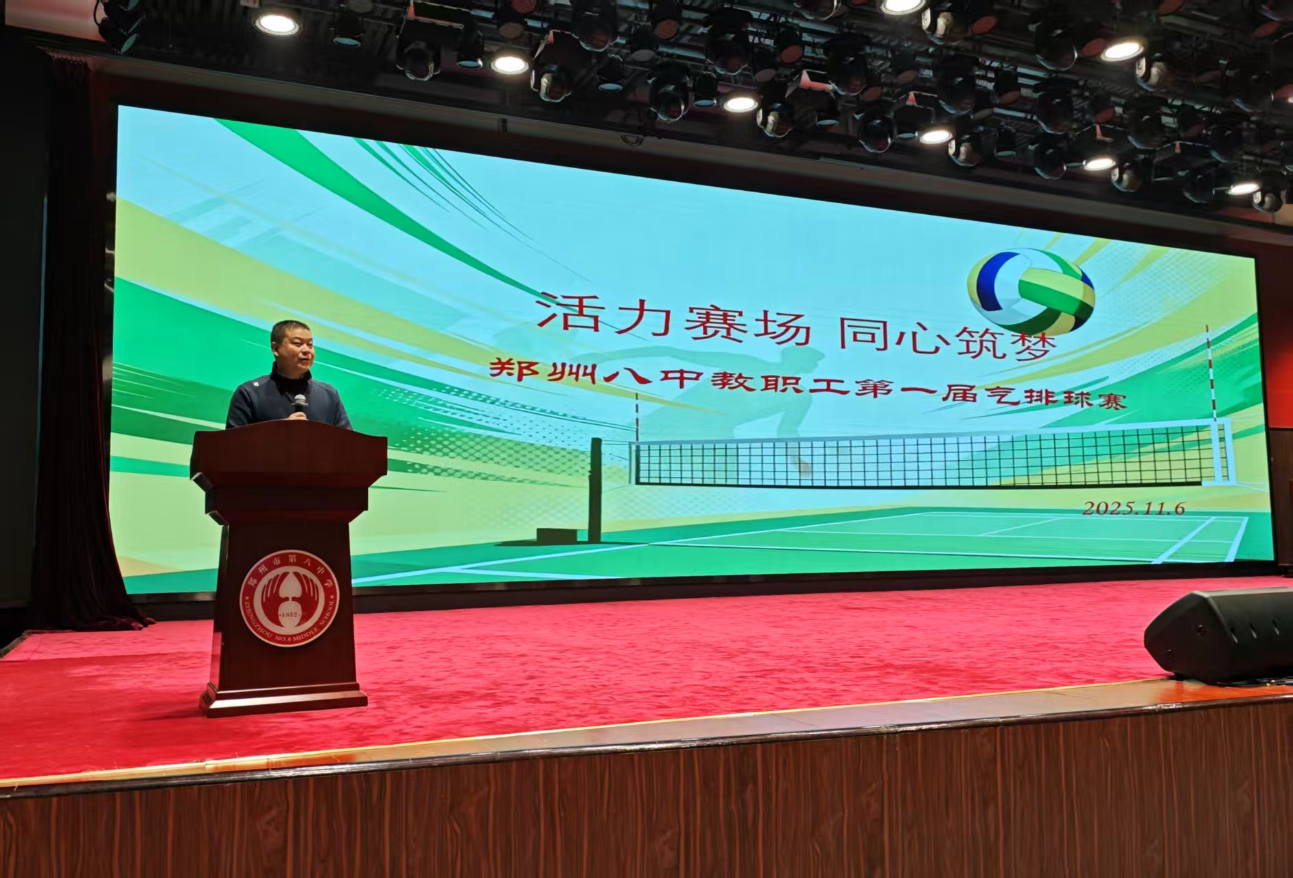 室外秋雨织寒韵,馆内竞技起热潮。为丰富郑州八中教职工的课余文化生活,增强身体素质,促进教职工之间的交流,11月6日下午,由郑州八中工会主办的“活力赛场 同心筑梦”第一届教职工气排球比赛在学校地下体育馆拉开序幕。郑州八中党委书记庞非、党委副书记郭晓军、工会主席何伟、副校长雷炀与全体教职工参加此次比赛的开幕式。