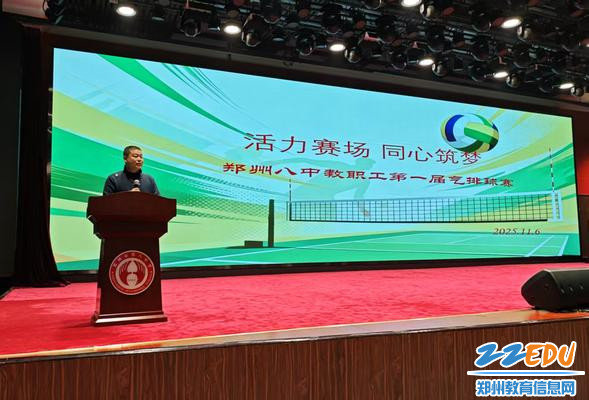 开幕式上,郑州八中工会主席何伟致辞。随后,学校领导共同开球为此次比赛拉开序幕。