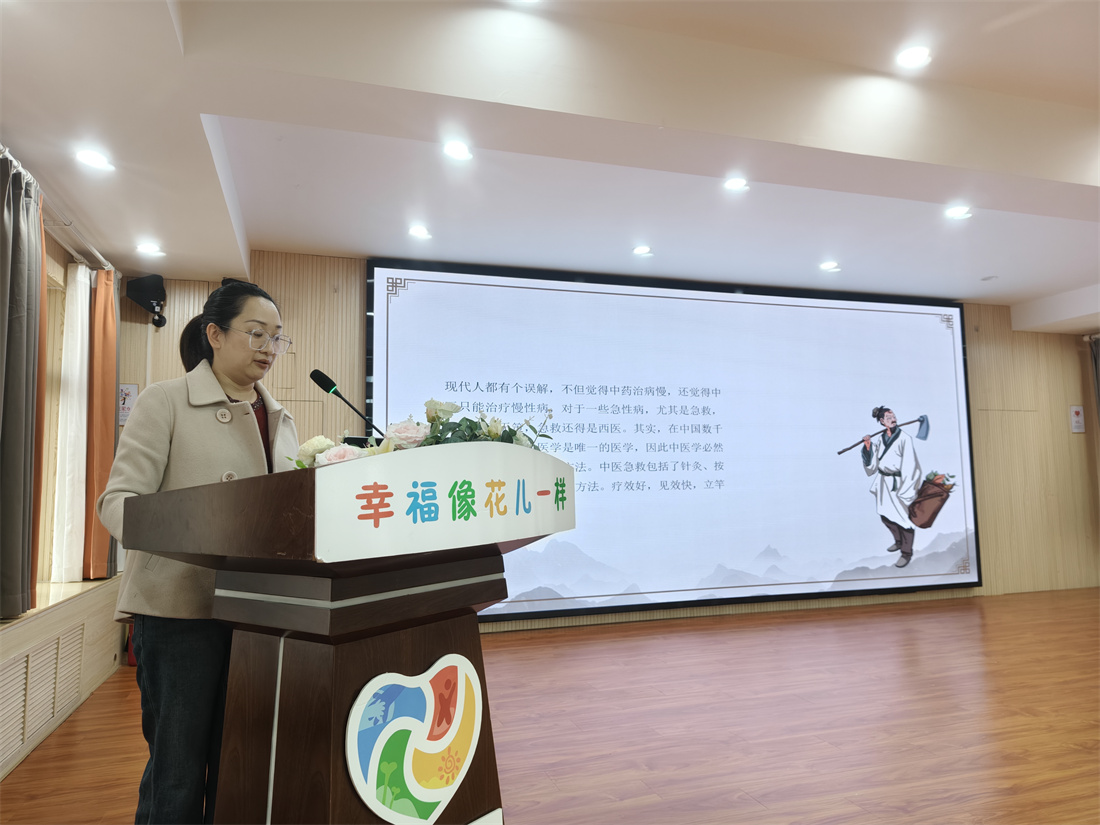 为弘扬中华优秀传统医药文化,提升生活教师的儿童健康意识,11月12日,河南省中医院主治医师张莎莎走进郑州市实验幼儿园开展主题培训活动。