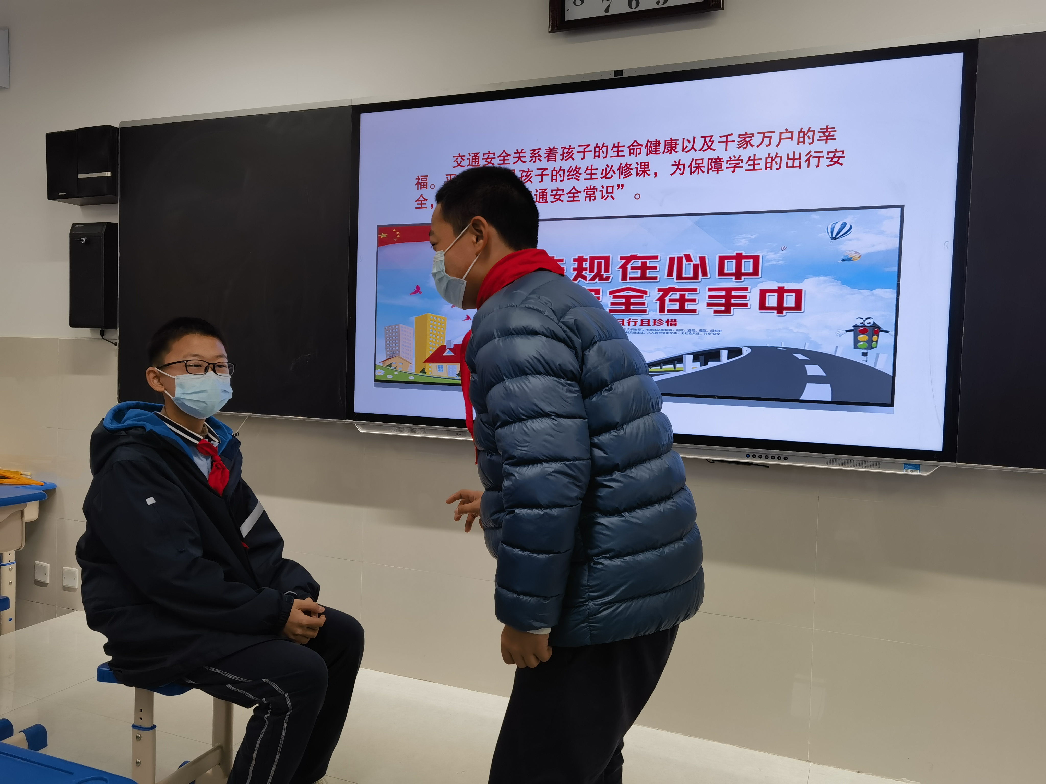“文明交通,你我同行。”是呼吁,是倡议;是目标,更是愿景。在主题课堂上,郑州八中新校区教学负责人孟光明以“文明交通、你我同行”为主题,通过案例分析和角色扮演的方式,运用通俗易懂、生动有趣的语言与同学们分享了最基本的交通安全知识,讲解了交通安全相关法律法规及交通常识,让同学们进一步认识到养成文明出行的良好习惯和提高自我防范意识的重要性,叮嘱同学们要时刻牢记“小手拉大手”,提醒家长要自觉遵守交通法律法规,共同营造良好的出行环境。