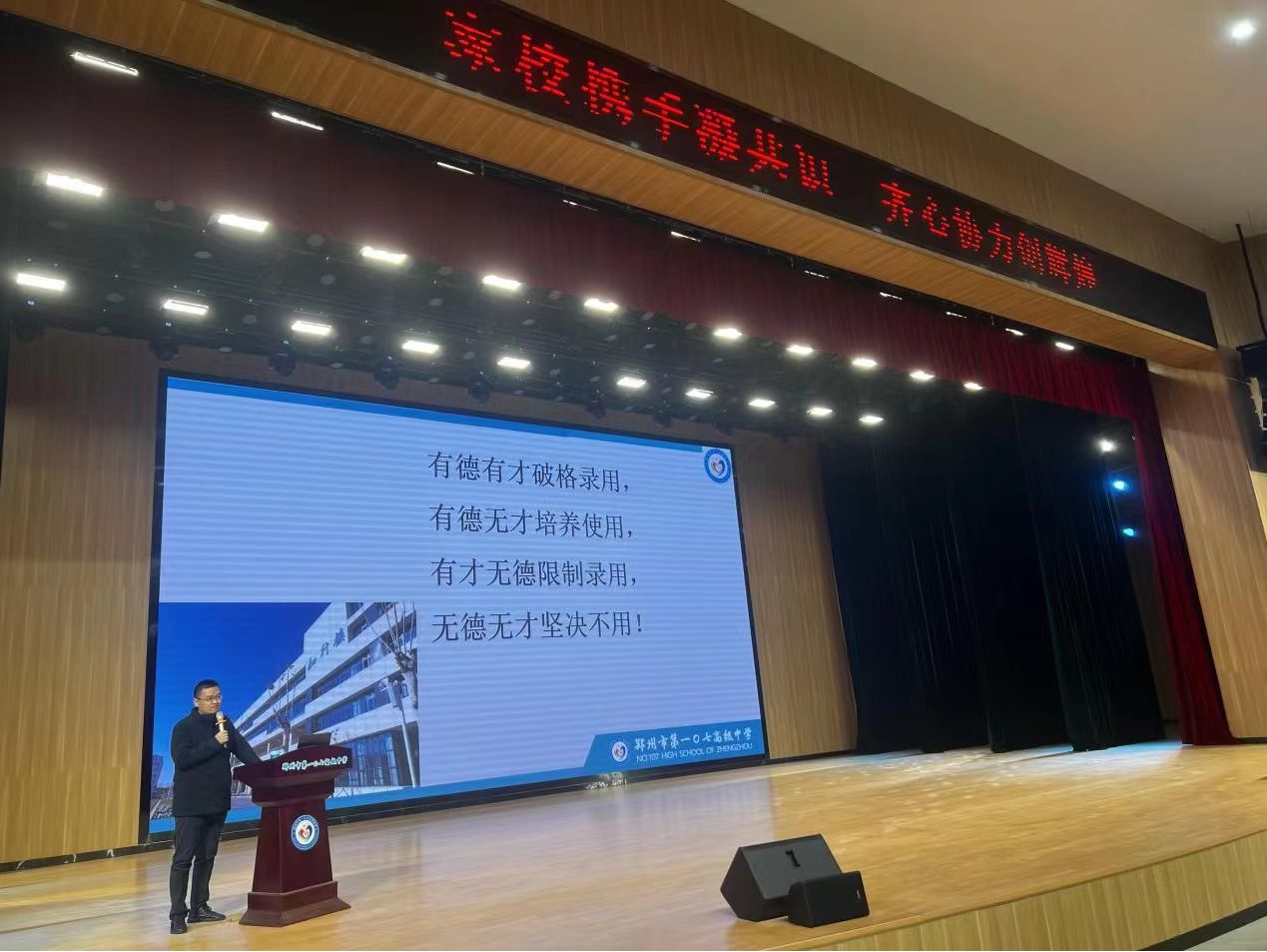 家校共育,携手共进;为爱奔赴,共话成长。为秉承学校“启迪智慧、明人未来”的办学理念,深化家校共育效能,营造良好的家校合作氛围,2023年12月1日,郑州市第一〇七高级中学召开以“同心同行同逐梦,家校共育待花开”为主题的教育讲座。