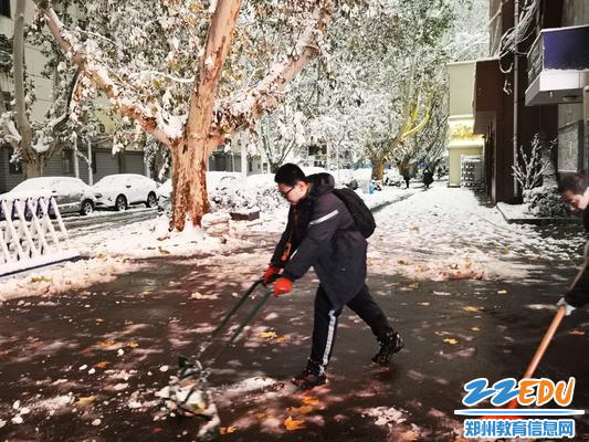 郑州八中班主任从劳动教育入手,鼓励学生积极加入清理道路上积雪的劳动中。同学们纷纷拿出铁锹、扫帚、小推车等清扫工具,在别样的作业中挥发热情,开辟一条洋溢着温情的道路。