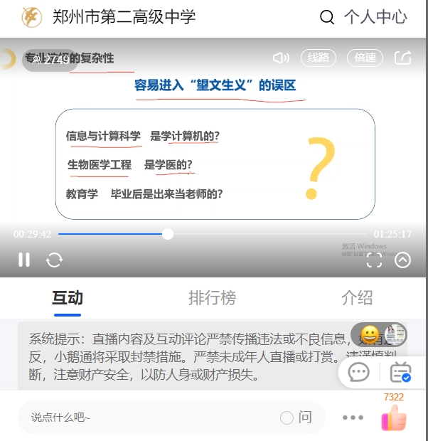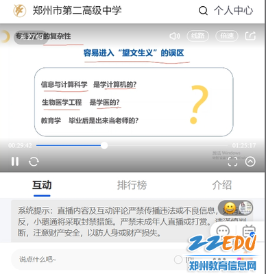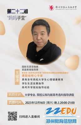 为进一步适应高考综合改革,使家长对专业、大学院校和多元升学路径有更科学的认识,12月16日晚上,郑州市第二高级中学第二十二期妈妈学堂邀请国际生涯咨询师、家庭教育指导师、教育部《新高考改革背景下教学研高效融合的智慧校园建设》课题组核心专家王耀泽开展线上讲座。