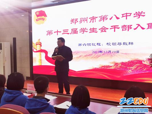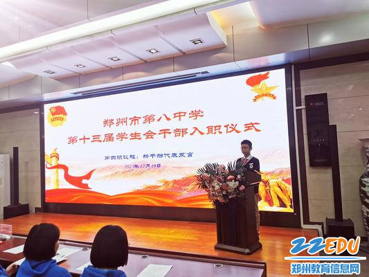 郑州八中副校长雷炀宣读第十三届学生会干部名单