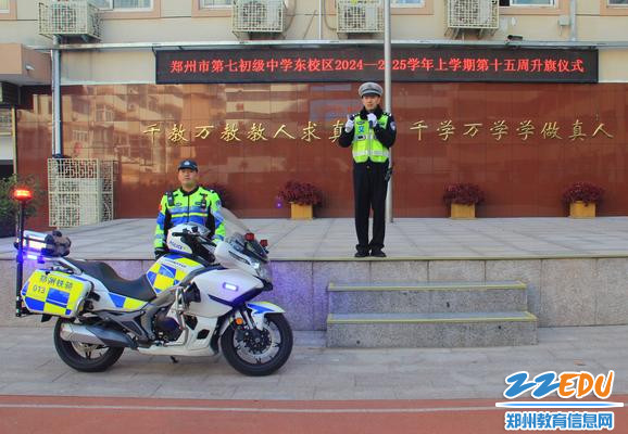 12月2日是第十三个全国交通安全日,为进一步提高师生交通安全意识,养成自觉遵守交通法规的良好习惯,12月2日,郑州市第七初级中学东校区联合郑州市公安局交通警察支队第一大队开展“文明交通 携手共创''122全国交通安全日主题系列活动。