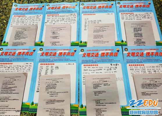 学生填写交通安全知识答卷