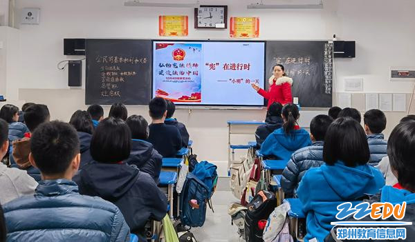 这个生动的场面,是郑州八中新校区今年开展第十一个国家宪法日暨第七个“宪法宣传周”活动的一个缩影。