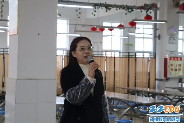 该校校长谭纪萍代表学校领导班子致辞。她说道:“今天大家欢聚一堂,包饺子、煮饺子、吃饺子,领略中国传统文化魅力,坚定文化自信,体会家的温暖,一起迎接更加美好的春天。”