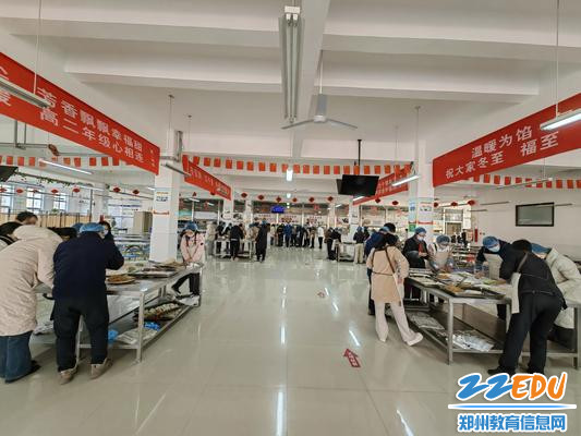 阳光倾洒,满盈暖意。郑州市第一〇一中学三楼食堂内,“温暖为馅 包出家的味道”“冬至时节寒意峭 暖心饺子情未了”等来自年级处室的红色横幅高悬于顶,醒目温馨。