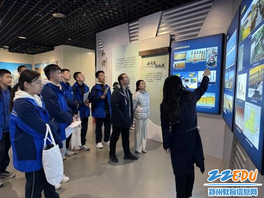 据悉,黄河博物馆是我国最早建设的河流博物馆,馆内共设流域地理、民族摇篮、千秋治河、治河新篇、和谐之路五大展区,展示了黄河的河道变迁、水患治理、文明发展等内容。场馆内,伴随着讲解员声情并茂的解说,通过丰富的文物、历史文献、图片和多媒体展示,同学们多角度、全方位地了解到黄河流域的自然概况、文化内涵和水资源开发利用等,强烈感受着我党治理黄河的丰功伟绩,仔细品味和体会中华民族在治理黄河过程中展现的自强不息、顽强拼搏的奋斗精神。走过黄河博物馆每个展厅,同学们穿越时空阻隔与历史对话,既是在回溯悠久的黄河文明,也是在回望民族发展的历程。