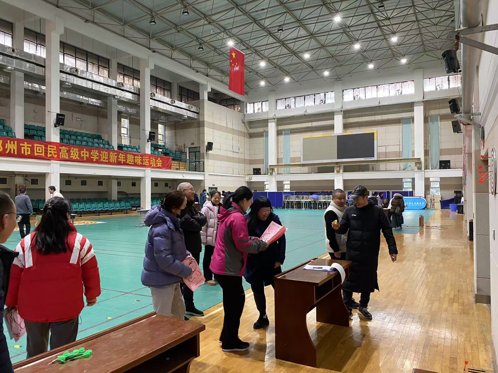 12月26日下午,郑州市回民高级中学体育馆,窗外碧空澄净、冬日煦阳,室内欢声笑语、人声鼎沸,“趣迎元旦 万象更新”迎新年教职工趣味运动会正在欢乐举行。
