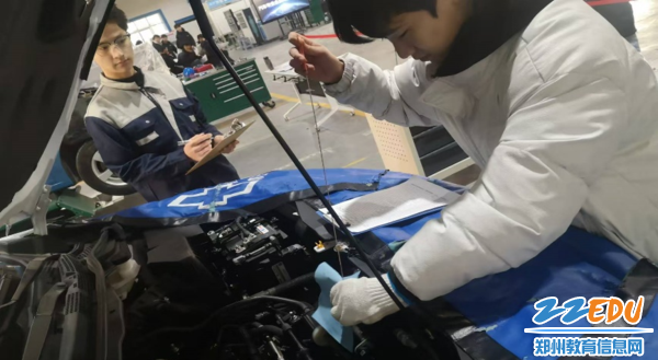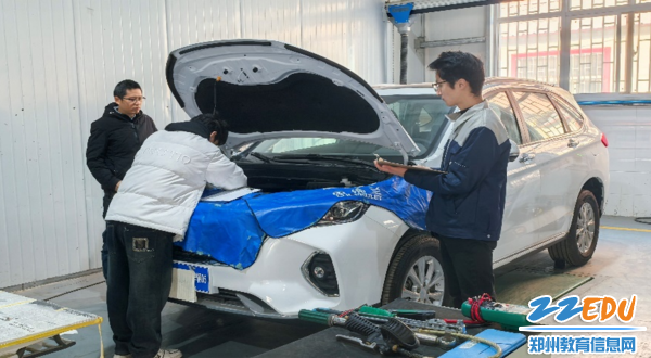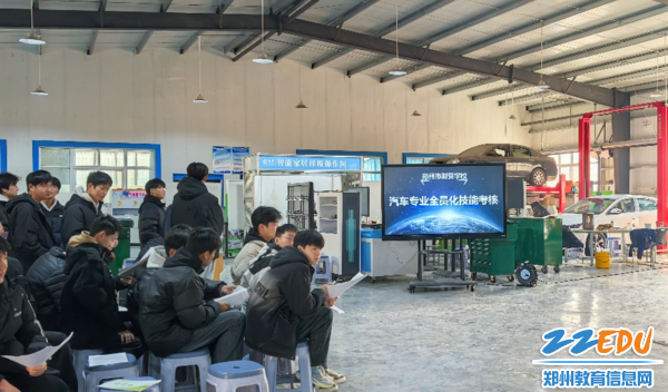 清晨的阳光洒落在校园的每一个角落,郑州市财贸学校现代制造专业部的实训车间内,呈现一片忙碌而有序的景象。在候考区,学生们有序地等待着即将到来的考核,他们手持准备好的资料,在最后时刻争分夺秒复习着理论知识。