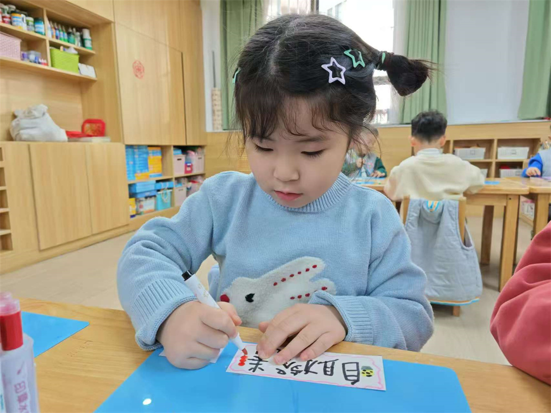 除了了解餐桌礼仪,小朋友们还亲手制作了色彩斑斓的菜品标签和入场券。每个孩子都发挥创意,用小小画笔创作出属于自己独一无二的入场券。他们兴奋地讨论着菜品标签的颜色和装饰,整个教室充满了欢乐的气氛。当一个个作品完成,他们把这些标签摆在餐桌上,营造出一个温馨的用餐环境。
