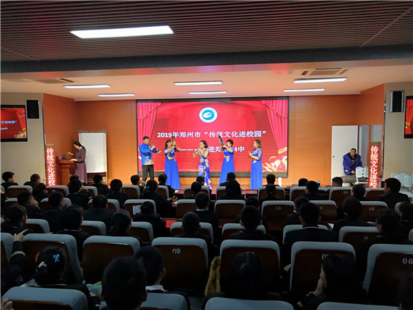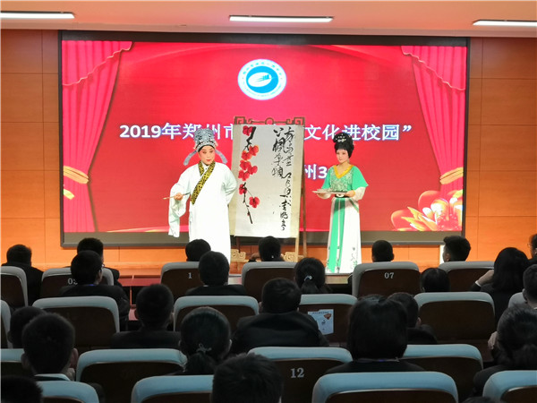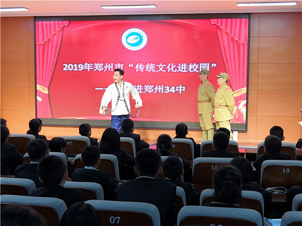 2019年12月4日下午,郑州34中邀请郑州市艺术创作研究院、郑州市非物质文化遗产保护中心、郑州市豫剧团的老师们,为学校师生带来一场优秀传统文化的视听盛宴。