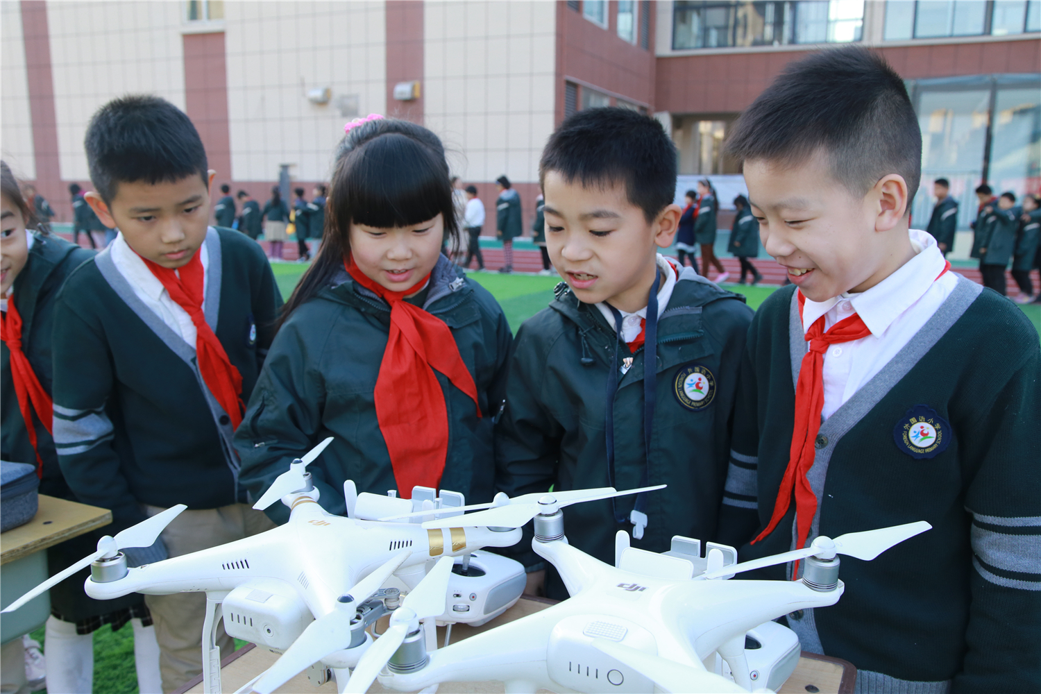 “无人机飞行技术有很多种,稍大类型无人机主要应用在农业等方面,用于喷洒农药等,中等类型无人机主要用于航拍,带有摄像头,稍小的一般是教学机,最小的是掌中宝,灵活轻便。农林植保机通过无线遥控实现喷洒作业,不仅可以喷洒农药,大载重的还可以喷洒种子。”孩子们听得格外认真,并不时伸出小手探索眼前陌生的科技产品,对无人机喷洒农药的具体细节讨论起来,外国语小学校长司岚岚也跟着学生一起加入了讨论,不时向老师提问。