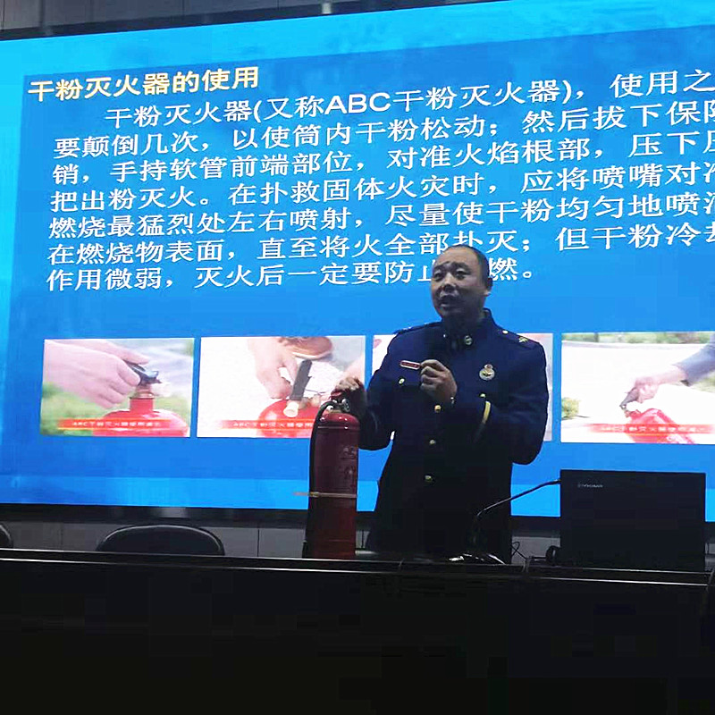 杨志勇通过播放视频、现场解说等方式讲解了多起重大火灾事故,触目惊心的画面和数字使所有受训教师深刻地认识到“隐患险于明火、防范胜于救灾”的重要性。针对学校的消防实际情况,结合工作和生活中用电、用气、用火的知识,杨志勇介绍了事故发生的原因和造成的危害,详细地讲解了火灾发生后的自防、自救、逃生技能,并按种类、功能、用途介绍了不同种类的灭火器,针对学校、家庭消防安全给出建议。