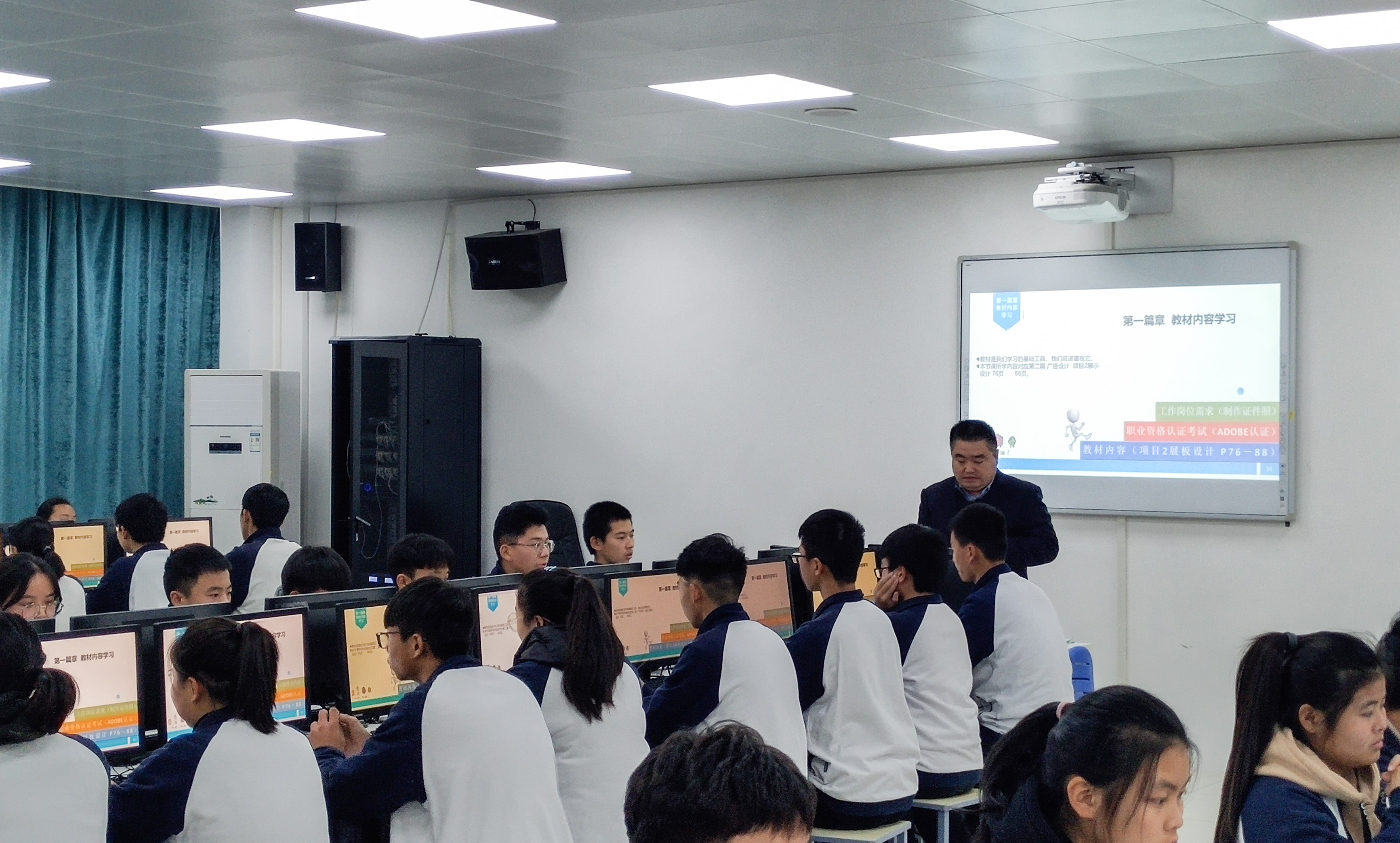 伴随着激昂澎湃的诗朗诵《沁园春·雪》,寇义锋老师带领学生以饱满的热情共同进入课堂《选区与抠图》。寇义锋老师采用翻转课堂教学模式,课前学生通过学习资源完成教材内容的学习,以社会主义核心价值观为学习小组命名,利用PS知识制作《沁园春·雪》海报,在课堂上将Adobe考证内容和平面设计专业岗位能力融入课堂中,整体设计流畅、环环相扣,突出培养学生的自主学习能力和实践能力,课堂上所用案例生动活泼,同学们现场拍照、制作证件照,合理利用手机,亲身体验职业情境。整个课堂巧妙地融入思政教育、职业素养教育、1+X证书等内容,充分利用问卷星、微课视频、学习平台、录屏软件、思维导图等手段,让学生在体验中学习,在学习中成长。