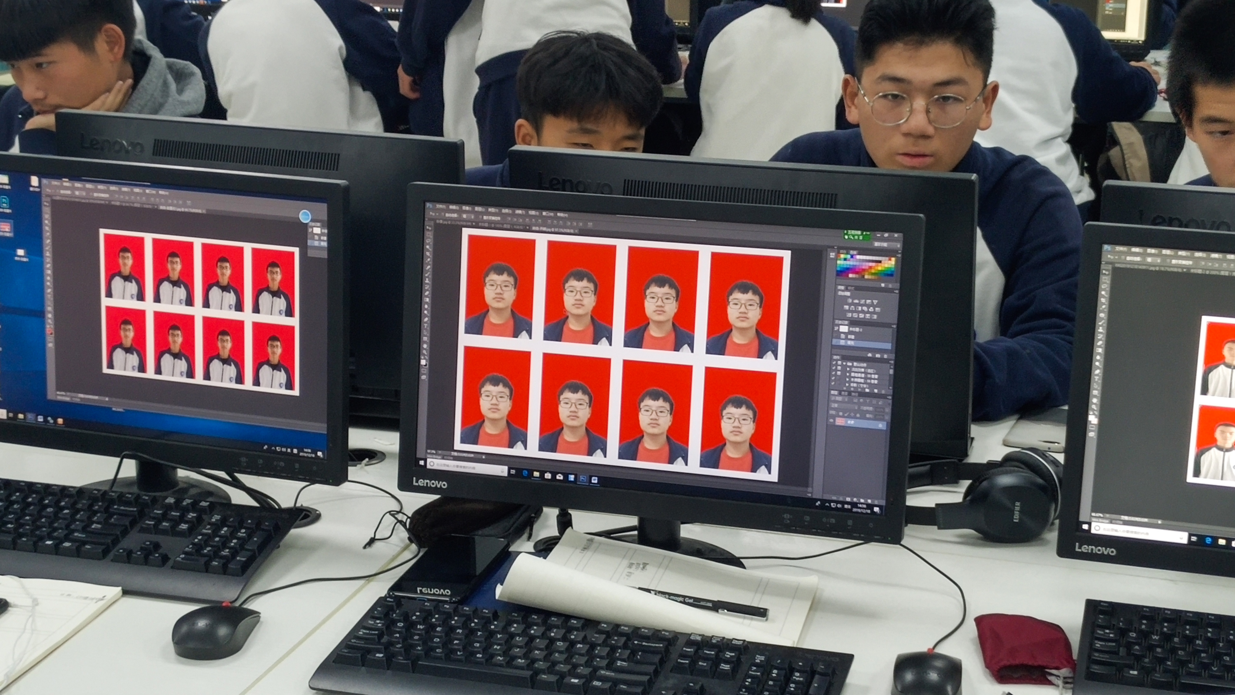 学生在课堂上制作证件照