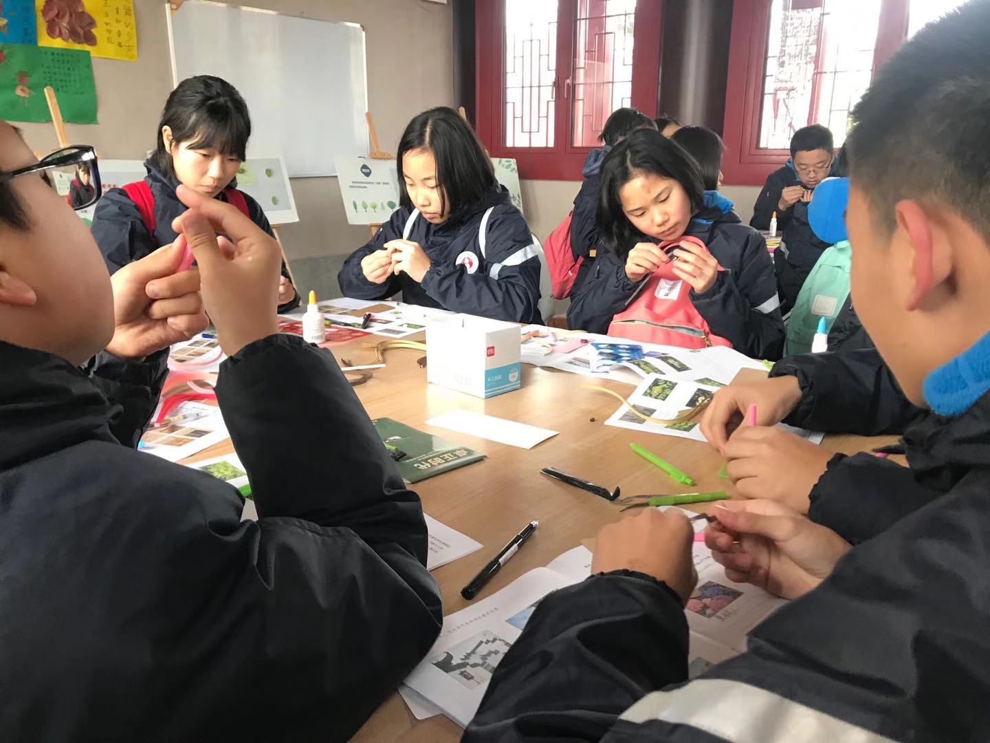 学生们在”豫园“制作衍纸书签