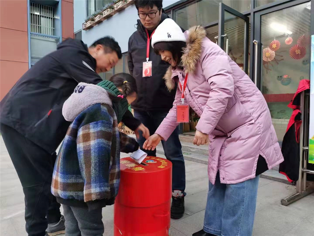 孩子们在家长的帮助下为自己的老师投出神圣一票