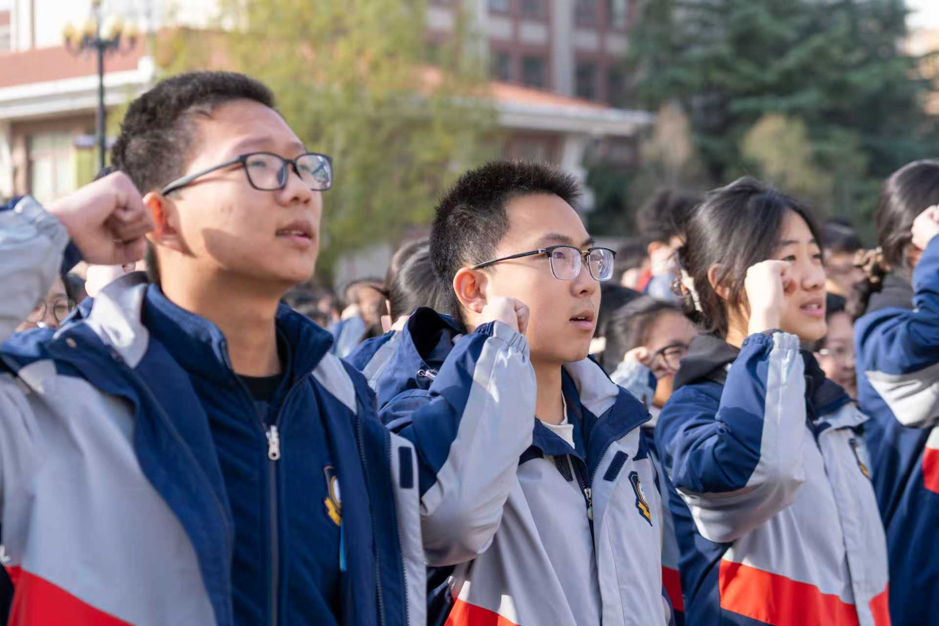 “自信、自律、自强;求真、博雅、向上!”在主持人的带领下,全校师生举起右拳,用洪亮而坚定的声音庄严宣誓。