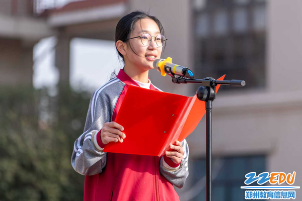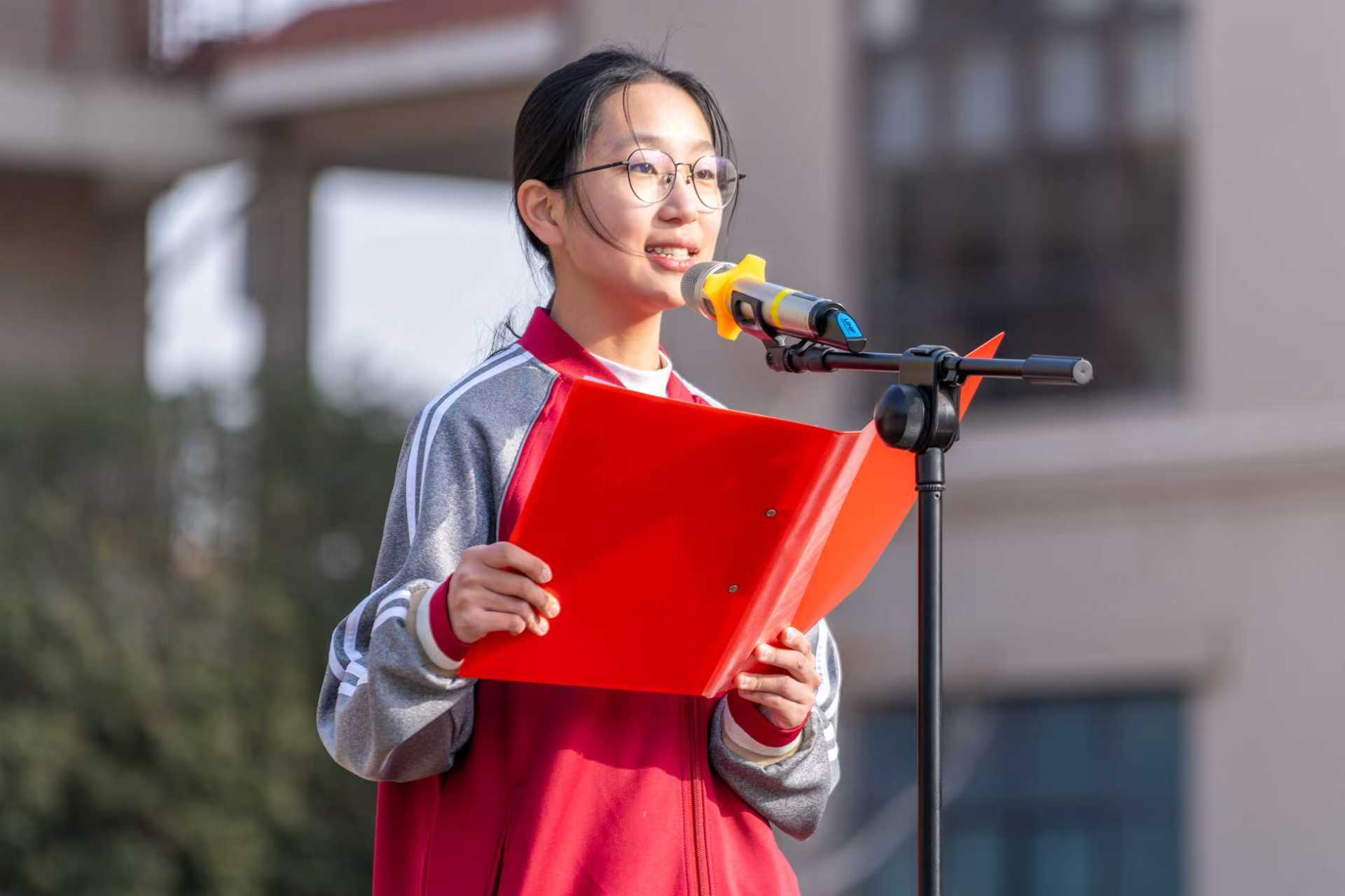宣誓完毕后,学生代表韩佳彤同学作了题为《心怀感恩 与爱同行》的发言。她引导大家将感恩的目光首先投向默默守护我们的伟大祖国,是祖国给予了我们安宁与发展的大家园。接着,她呼吁大家感受社会的温暖,并特别聚焦于校园这一青春港湾。她深情表达了对日夜陪伴、辛勤付出的老师们的深深感恩,也提醒大家永远不要忘记那个永远守候我们、永远牵挂我们的家和父母。