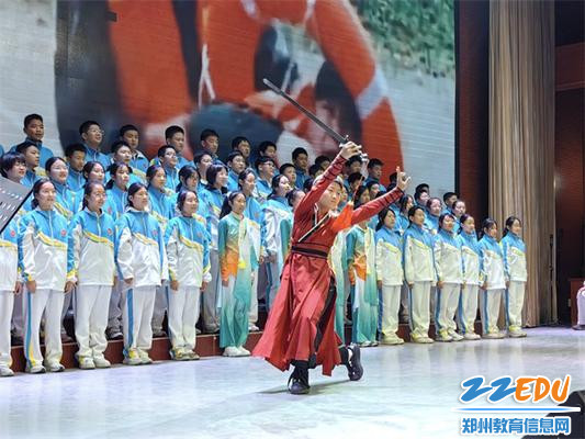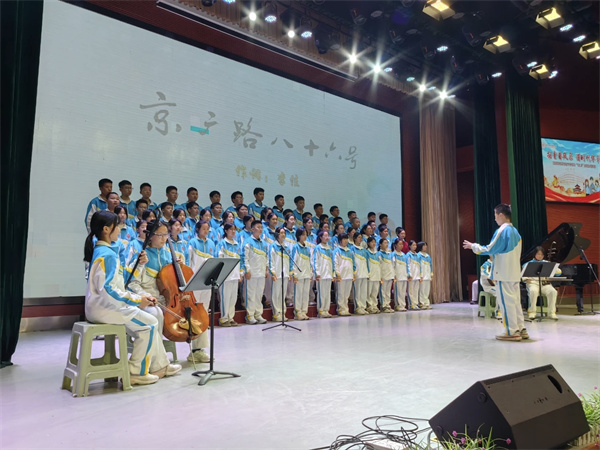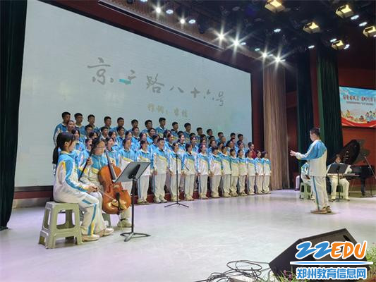 比赛中,七年级各班均深情演绎《郑州四中校歌》或校园原创歌曲《京广路86号》,旋律动人,情感真挚,表达了对母校的深切热爱。自选曲目则成为各班展示创意与风采的舞台,从《奇迹再现》《骄傲的少年》等洋溢青春活力的作品,到《我和我的祖国》《我爱你中国》等饱含家国情怀的经典曲目,再到《少年中国说》《天地龙鳞》等彰显文化自信的篇章,共计15首风格各异的歌曲轮番上演,展现出新时代少年昂扬向上的精神风貌。