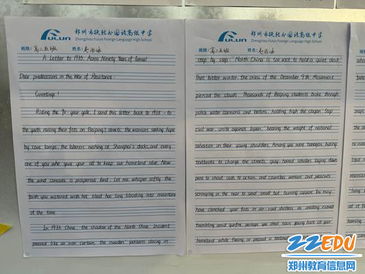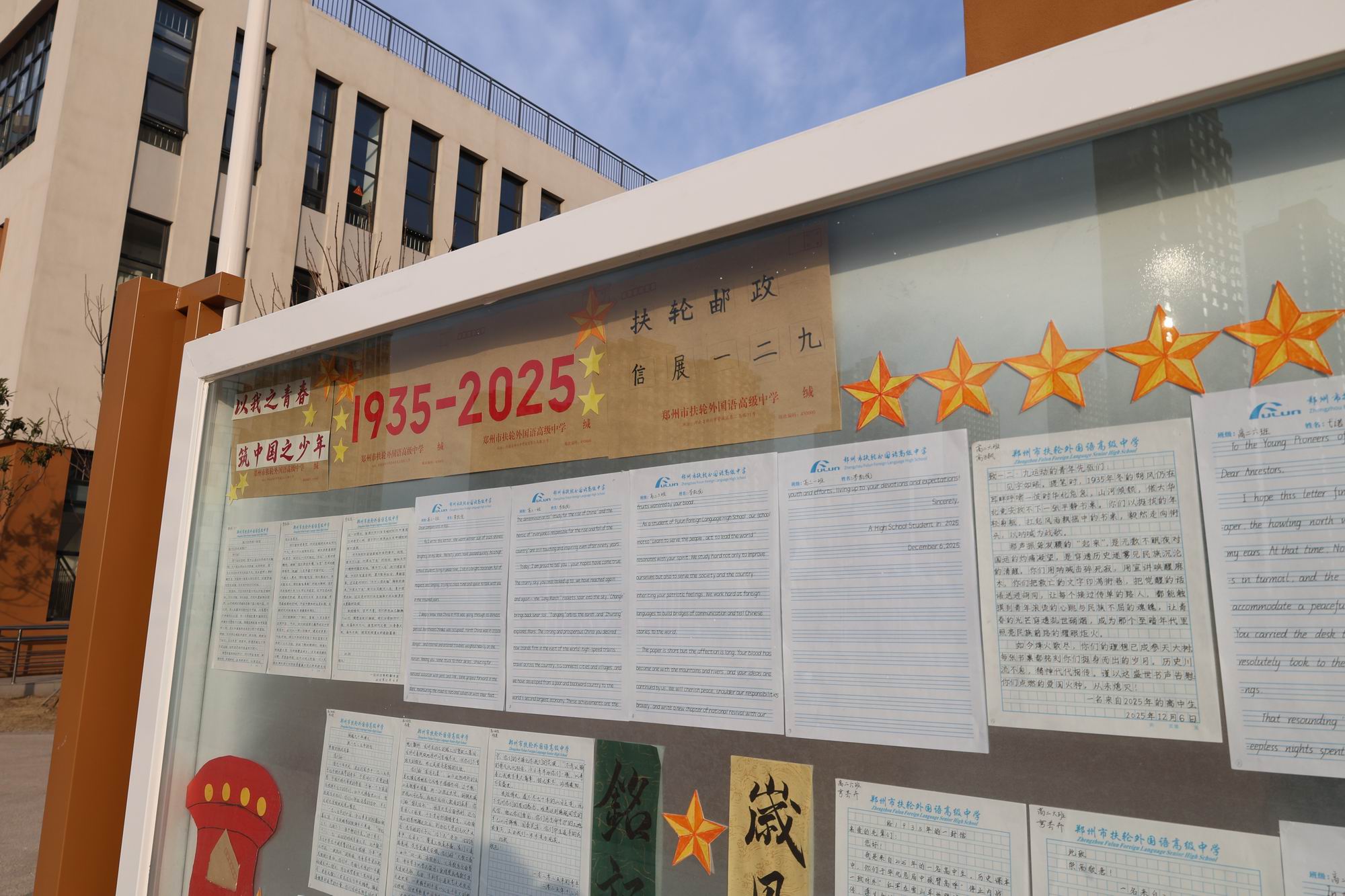 为纪念“一二·九”运动90周年,激发学生民族自豪感与时代责任感,同时提升双语表达与文化素养,郑州市扶轮外国语高级中学团委于12月精心策划“纪念‘一二·九’·纸短情长·双语行动”主题活动。活动以“给1935年的信”书信展暨中英文书写比赛、手抄报创作比赛为载体,为学生搭建起跨越时空对话历史、立足当下展望未来的育人平台,让红色基因在沉浸式参与中代代相传。