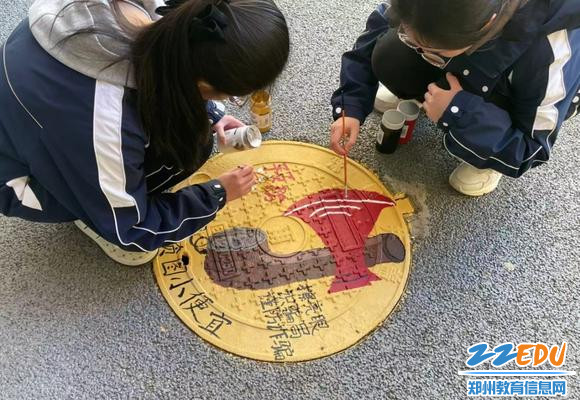 12月8日至12日,郑州市第十七高级中学组织开展了一场别开生面的校园井盖涂鸦活动。在该校美术教师张伟婷的指导与组织下,同学们以井盖为画布,运用缤纷的色彩与丰富的创意,将安全防范、卡通形象、音乐艺术等主题融入一幅幅生动图画之中,让原本单调的公共设施成为校园中兼具观赏价值与教育意义的“艺术角落”。