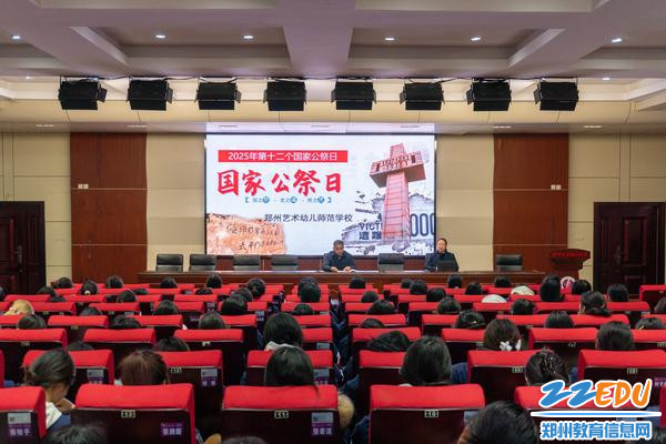 2025年12月13日,是我国第12个南京大屠杀死难者国家公祭日。12月12日上午,郑州艺术幼儿师范学校师生怀着无比沉痛与庄严的心情,齐聚综合排练厅、报告厅举行纪念活动,缅怀88年前在南京大屠杀中惨遭屠戮的30多万同胞,传承历史记忆,凝聚奋进力量。