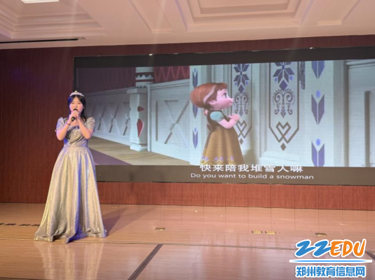 配音,是“声”与“影”的绝佳碰撞、“音”与“画”的精妙配合。在配音节目《Tough Love》和《Do you want to build a snowman》中,同学们的精彩模仿和认真投入使动画中的人物和现实声音融为一体。无数个角色,被同学们演绎得惟妙惟肖,精彩纷呈,全场不时响起雷鸣般的掌声。