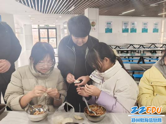 郑州市第一〇七高级中学校长丁红指导学生包饺子