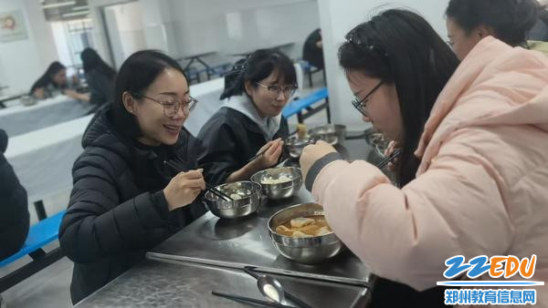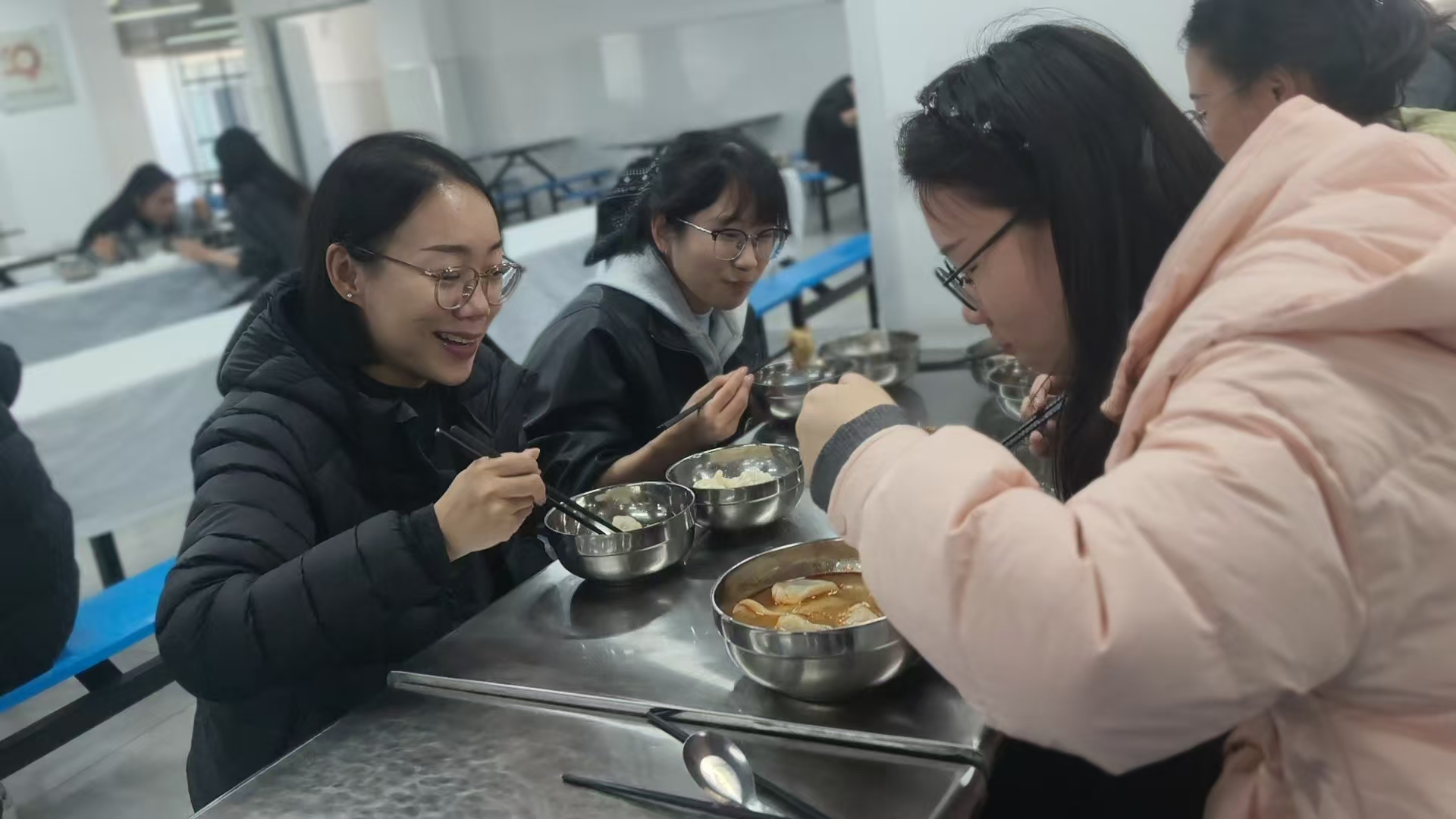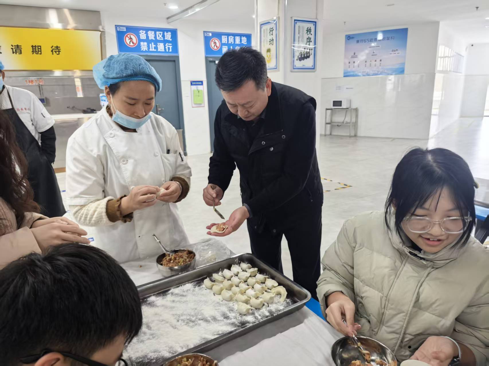 当最后一盘饺子包好时,整个餐厅都弥漫着期待的气息。食堂师傅小心地将师生们亲手包制的饺子分批下入锅中。当一锅锅饺子热气腾腾地出锅,香气四溢,大家围坐在一起,品尝着亲手制作的美味。这一刻,形状各异的饺子不再只是食物,更成为情感联结的载体——你为我夹一只,我为你盛一碗,笑语声声里,冬日的寒意悄然褪去,温馨的情谊盈满食堂。