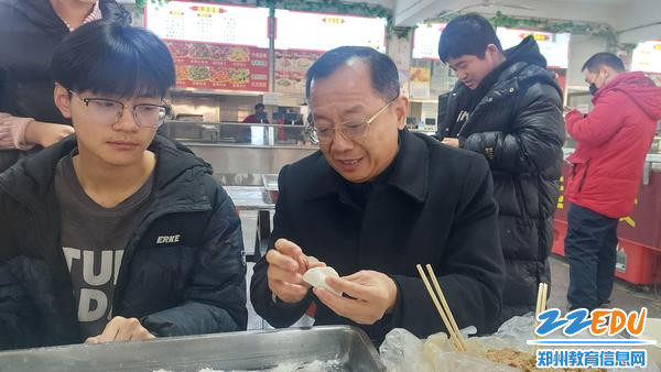 郑州市财贸学校党委书记魏勇教学生包饺子