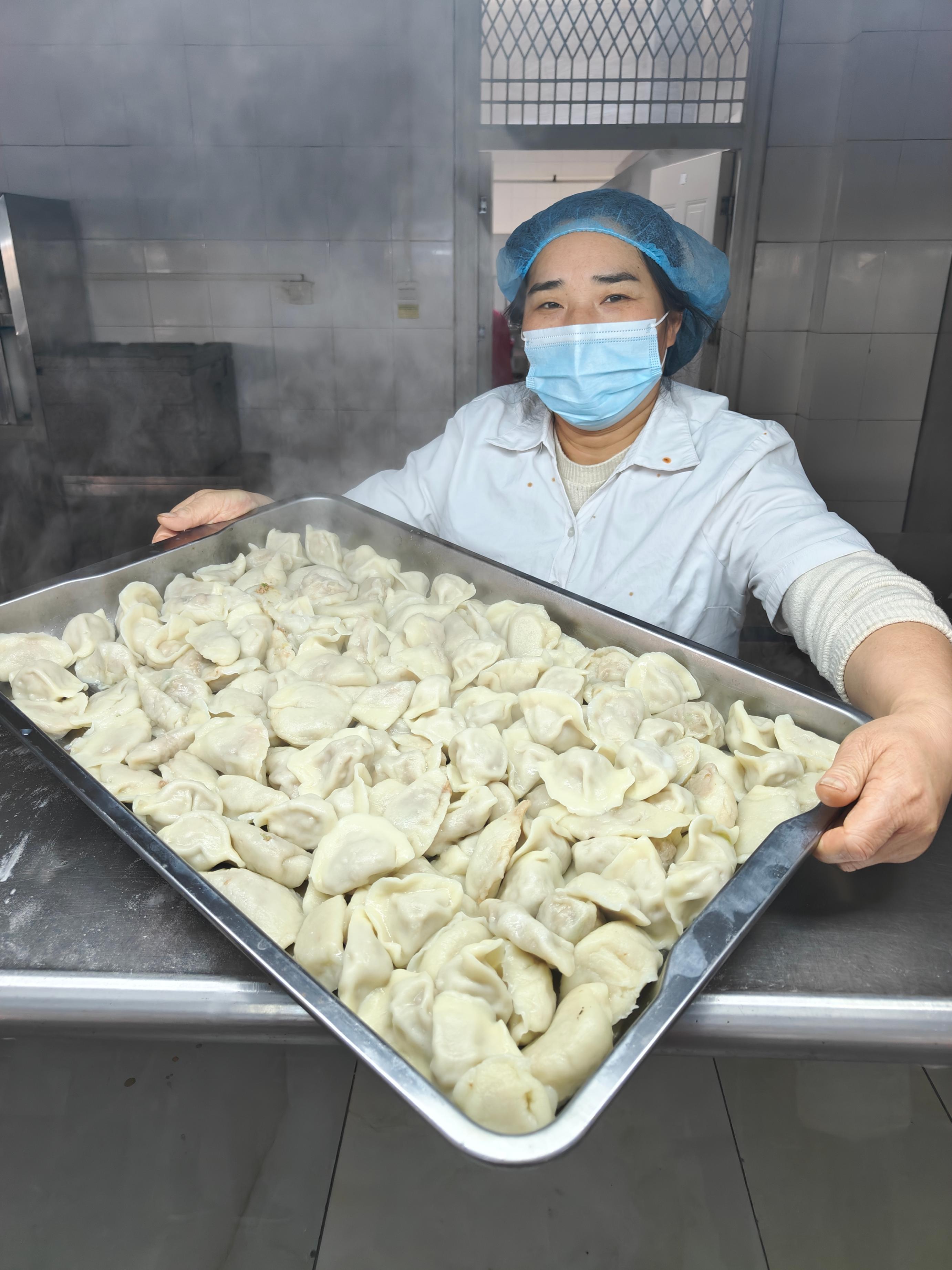 食堂工作人员配合下饺子