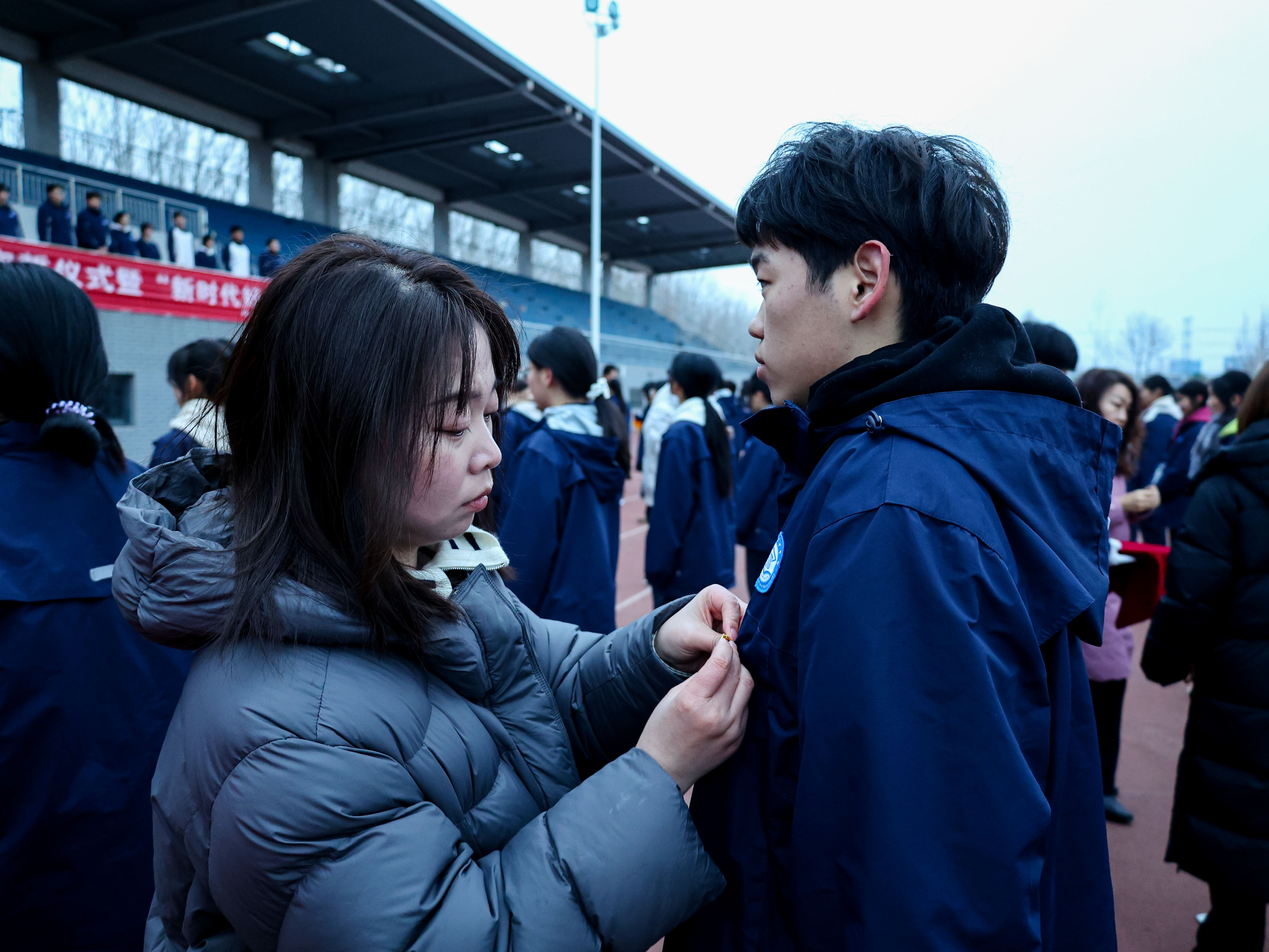 随后,李晓培宣读新团员名单。学校领导和各位班主任分别为新团员佩戴团徽,熠熠生辉的团徽佩戴在胸前,不仅是一份光荣的象征,更提醒着每一位新团员牢记身份、践行承诺。