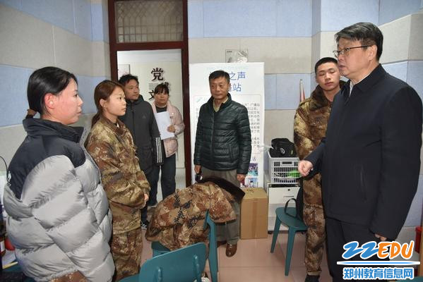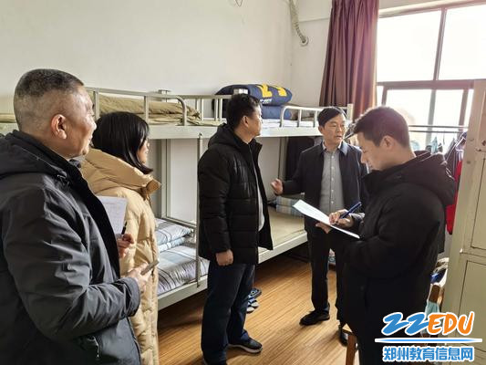 郑州市国防科技学校副校长王战峰查看学生宿舍