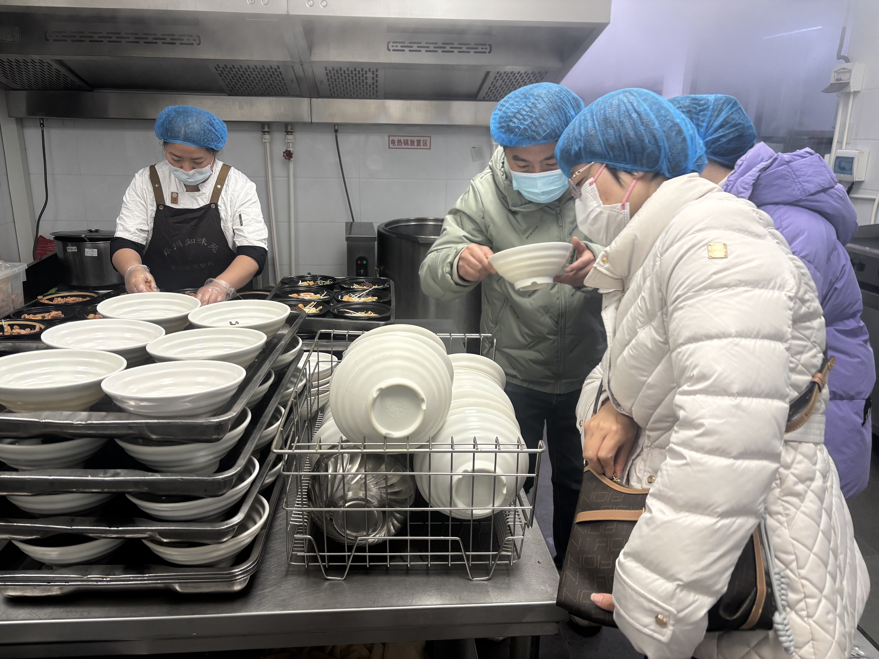 会后,膳食委员会成员深入食堂后厨进行实地检查。委员们查看了从食材清洗、切配到烹饪、备餐的全流程操作,特别检查了餐具清洗消毒流程,并查看了食品留样柜的规范管理情况。同时,对加工区域的卫生状况、防蝇防鼠设施进行细致核验。检查发现,食堂整体管理规范、操作有序、卫生状况良好。对于委员提出的个别细节问题,食堂管理方现场确认并立即安排整改。
