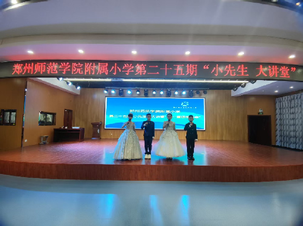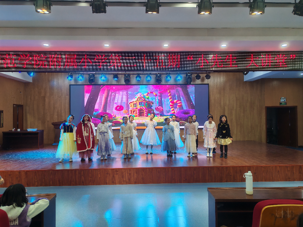 2025年12月25日下午,郑州师范学院附属小学的报告厅,变成了一个充满奇幻色彩与纯真梦想的“童话王国”。第二十五期“小先生,大讲堂”以“童话故事会”为主题如期开讲,为三年级全体师生带来了一场视听与心灵交织的梦幻旅程。