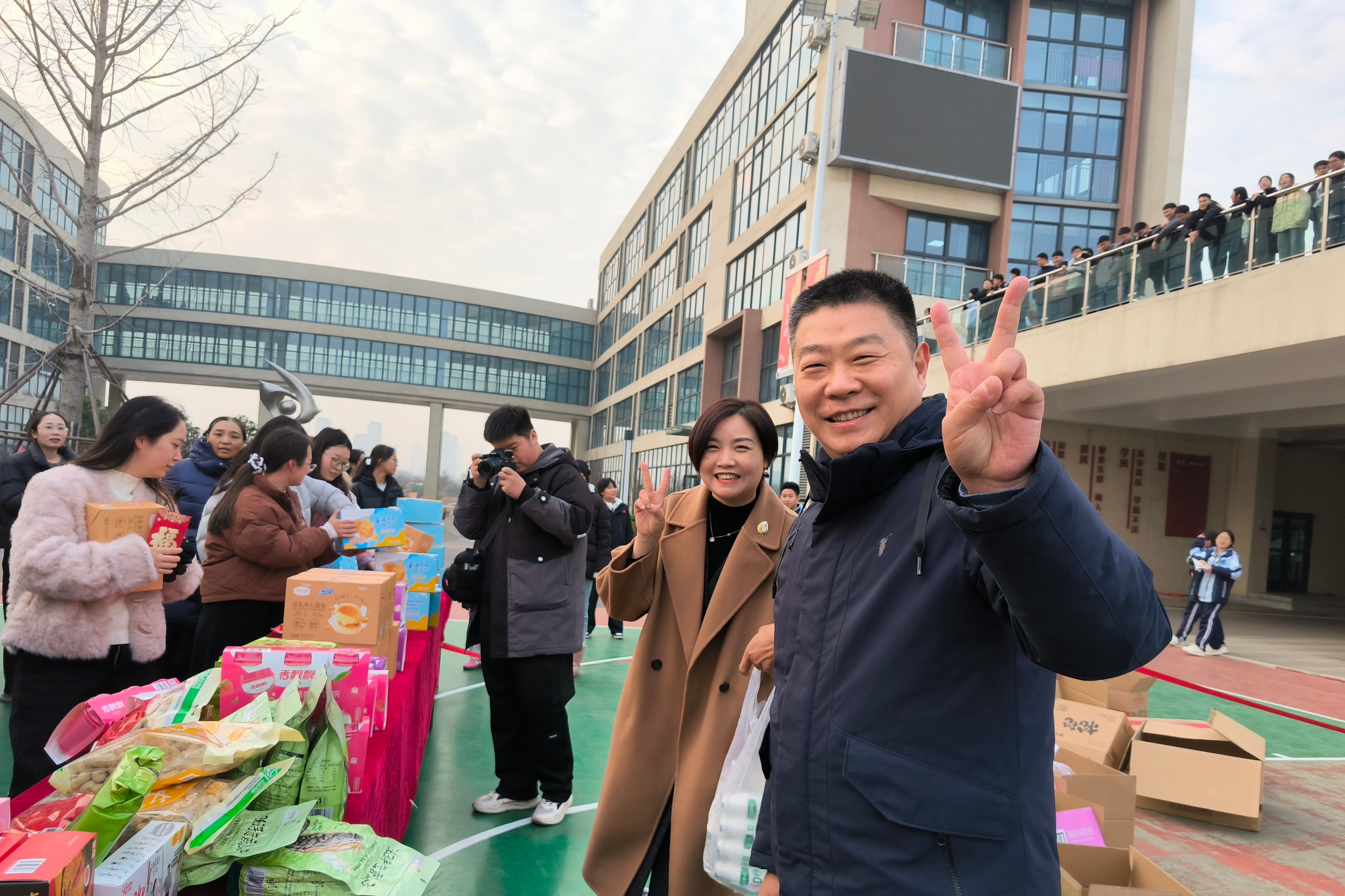 在西门游戏点,十处套圈场地井然排开。老师们暂歇奔跑的脚步,手持彩圈,专注投掷。套中时的清脆声响与欢声笑语交织,仿佛驱散了冬日的寒意,也“套”住了旧岁的收获与欢乐,现场洋溢着轻松愉快的节前氛围。